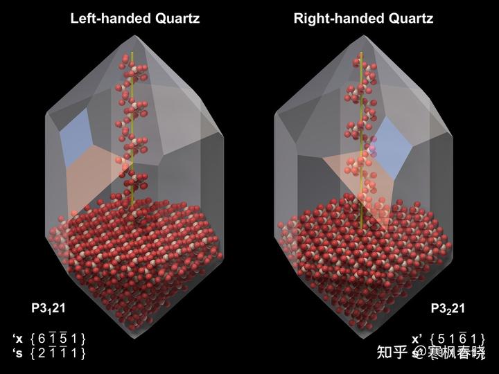 这种螺旋可以顺时针,也可以逆时针,所以,石英晶体就出现了左形和右形之分。