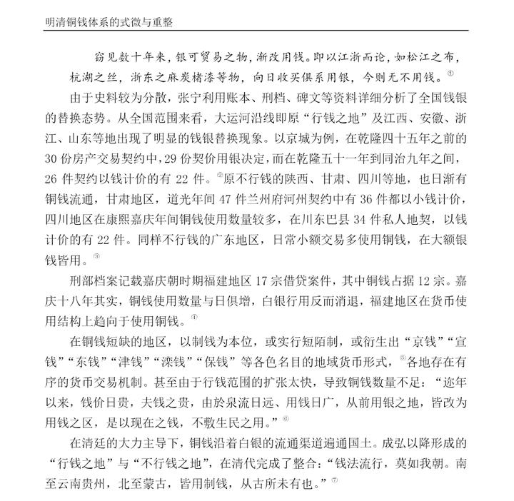 同样是拿北宋与清朝来对比,参考程民生的《宋代物价研究》的北宋部分,除了作为单一的铁钱区的四川之外,其它地方的绝大多数物价记录都是铜钱;而清朝在大额交易中是银钱并用,甚至在土地房产交易和借贷领域,都有很多使用铜钱的情况,至于小额交易则几乎全为铜钱。