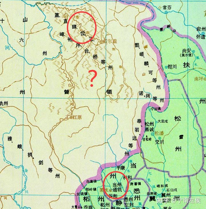 那么这个“古当州”又是哪儿呢?其实应该写成“古‘当州’”,唐朝贞观二十一年在剑南道设置了一个当州,原因是这里盛产当归,位置目前推测是在黑水县一带——这地方跟若尔盖不敢说没关系,起码也是南辕北辙了。