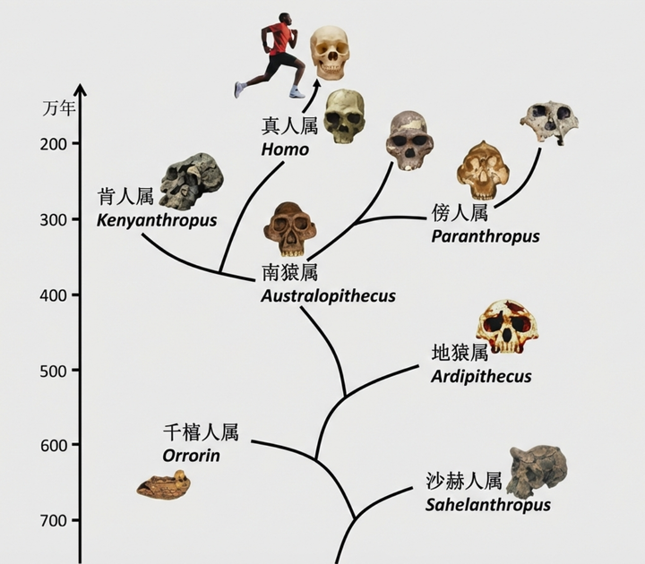 一边是环境的严酷,一边是人属的强大竞争力,南方古猿等人属表亲,自然逐渐跌落斩杀线,最终在 200 万年前走向了灭绝。