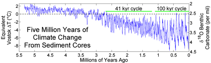 虽然一开始冰期相对没有那么长,但循环却非常快,大约每 4.1 万年便会经历一场冰期 - 间冰期周期。
