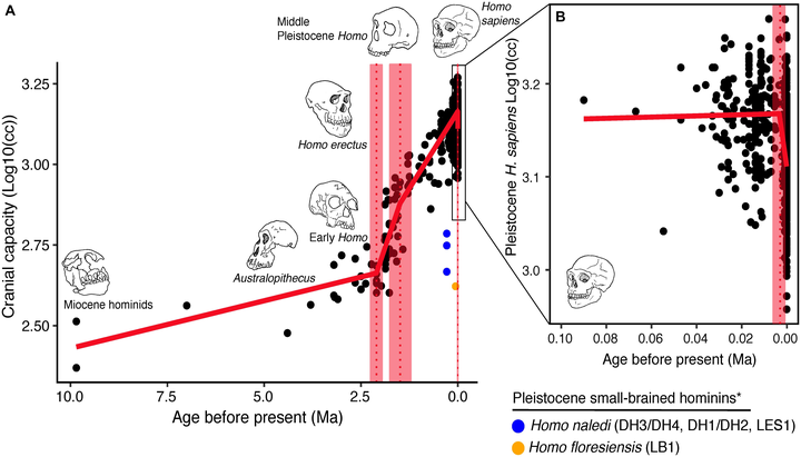 我们祖先的脑容量再次迎来了大爆发,当然这个爆发并不是一蹴而就,持续时间以数十万年计。