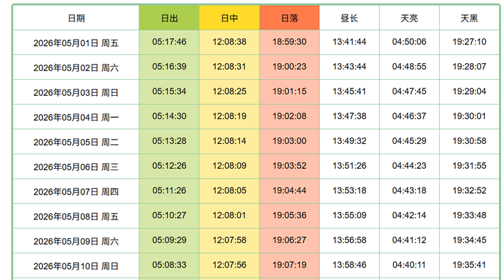 由于存在折射和反射的缘故,这个时间比日出时间还要早半个小时。