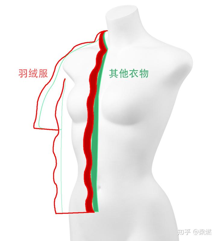 所以,我们一般会在内衣和羽绒服之间再穿一层抓绒,不是因为抓绒有多保暖,而是为了填充身体和羽绒服之间的空隙,让空气不流动。这个作用的主要目的不是加厚,是改善结构。主要原因是羽绒服本身做的版型不对。