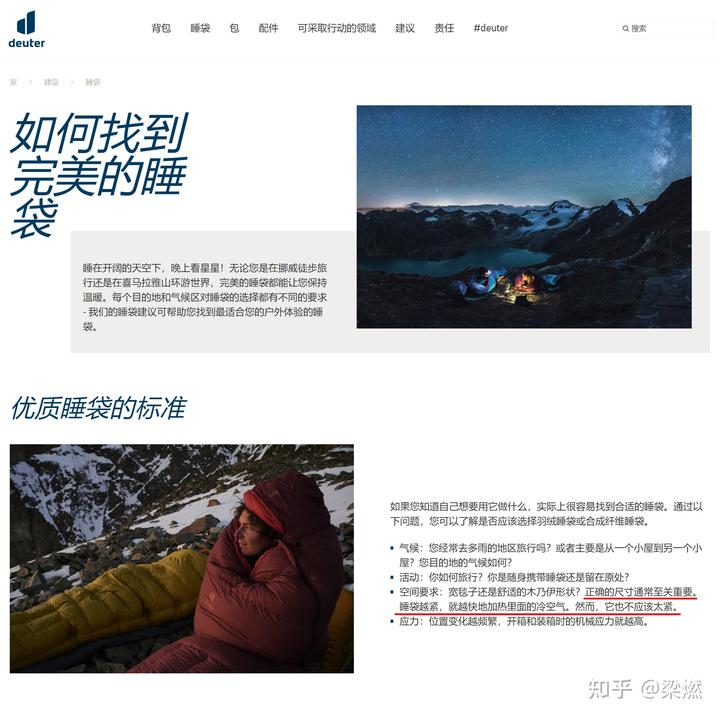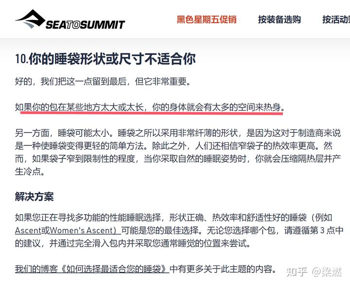 有经验的户外玩家,比如一个一 1 米 7 的人买到了一个 1 米 8 的睡袋,他会怎么做?他会把睡袋的脚部总绳子扎起来,否则多出的一节就会空荡荡的,脚一动就会有大量空气流动。