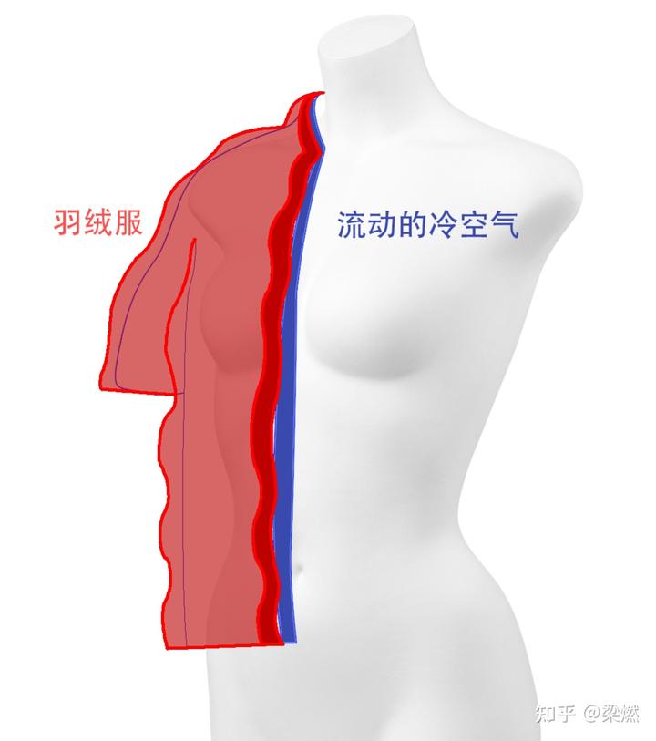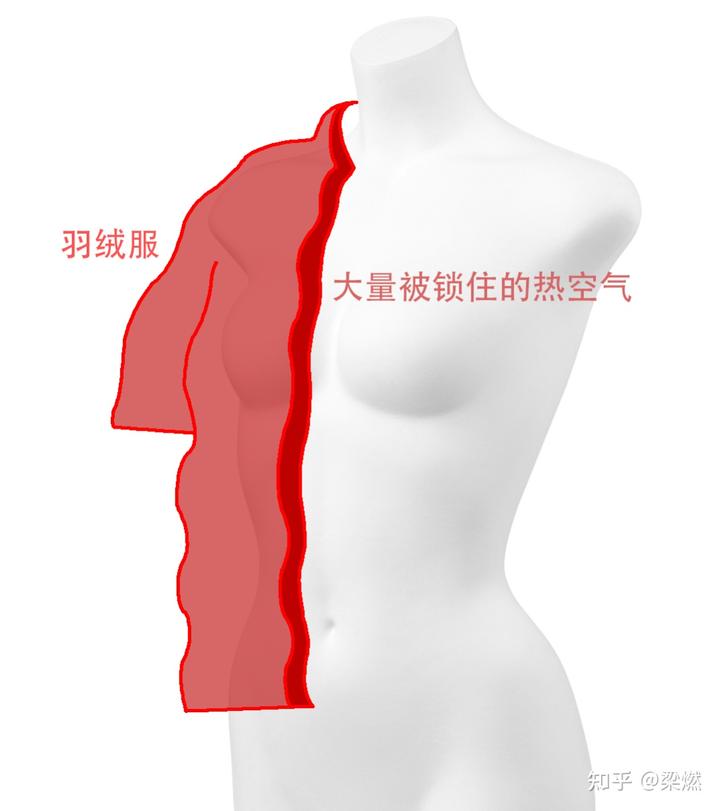 羽绒为什么保暖?是羽绒锁住了空气,让空气不产生对流,而静止的空气是优秀的绝缘体。但你羽绒服如果和身体之间空隙过大,稍微一动,静止的空气就会流动起来,就不保暖了。