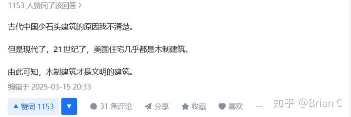 这跟建筑材料是木材还是石头,根本没有关系,无论材料是木制还是石头制,重要的是建筑结构。结构的硬伤是无法单纯的靠材料堆积就能解决的。 建筑的受力逻辑、荷载传递路径、抗弯与抗剪设计这些东西如果本身出了问题,再强的材料也意义不大。