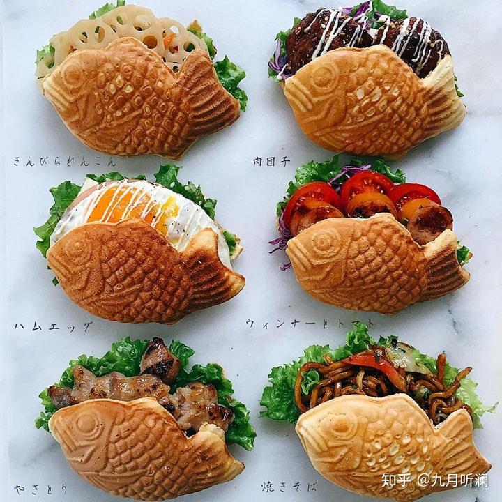 六款鲷鱼烧三明治,不加豆沙,直接素烤,然后切开来夹其他美食,真是个好主意