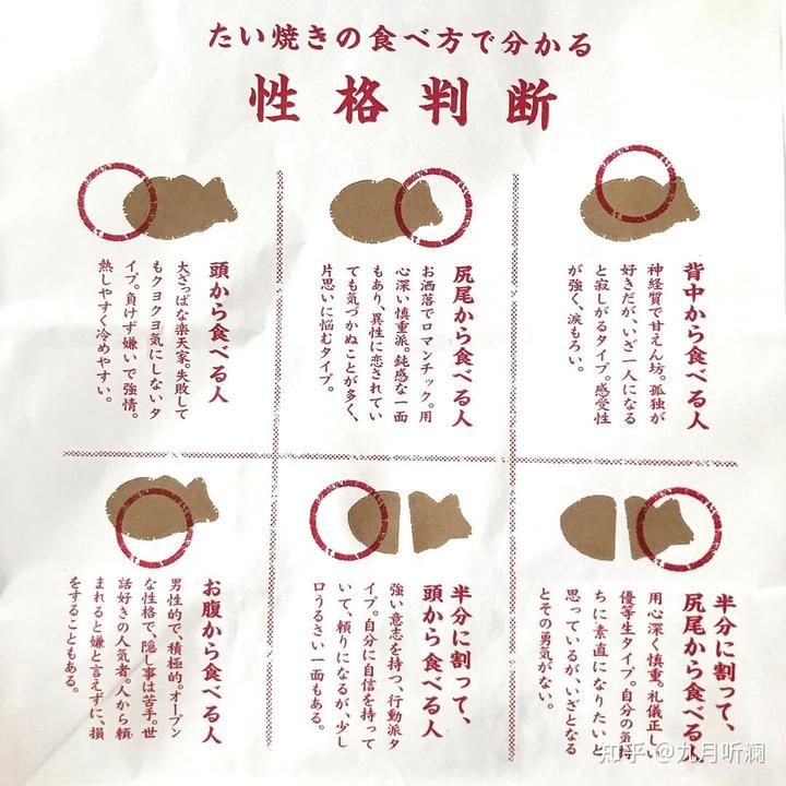还有从背部开始吃的,从肚子开始吃的,分成两半后从头 / 从尾开始吃的……额,岛国的鲷鱼烧粉们,您们好专(无)业(聊)啊!哈哈哈!