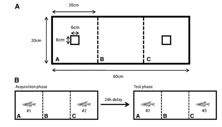 具体来说,就是拿一个鱼作为实验对象,放在水缸里。缸是特制的,中间可以插上透明的隔板,这样实验鱼就可以透过隔板看见对侧的鱼。在需要的时候,还可以挪走隔板,让鱼实现更接近的”互相认识“。