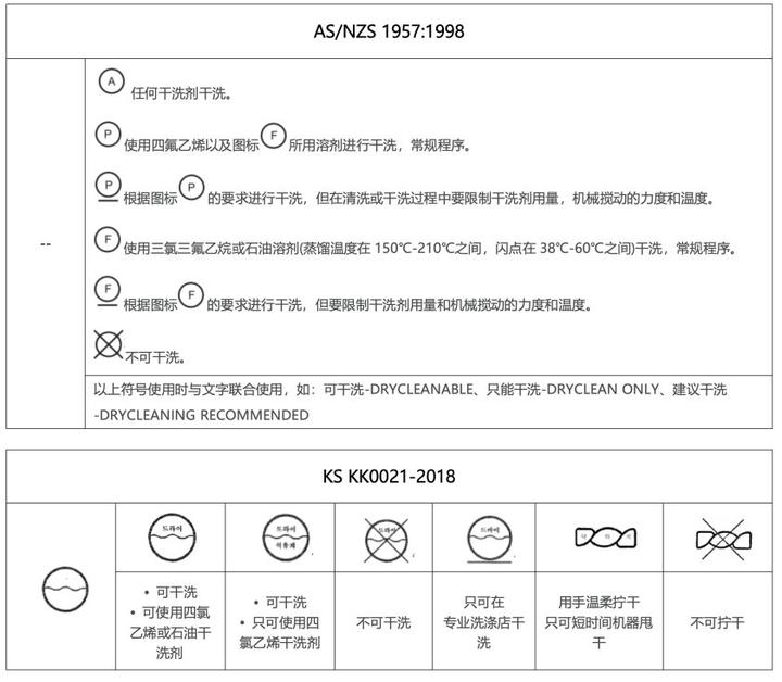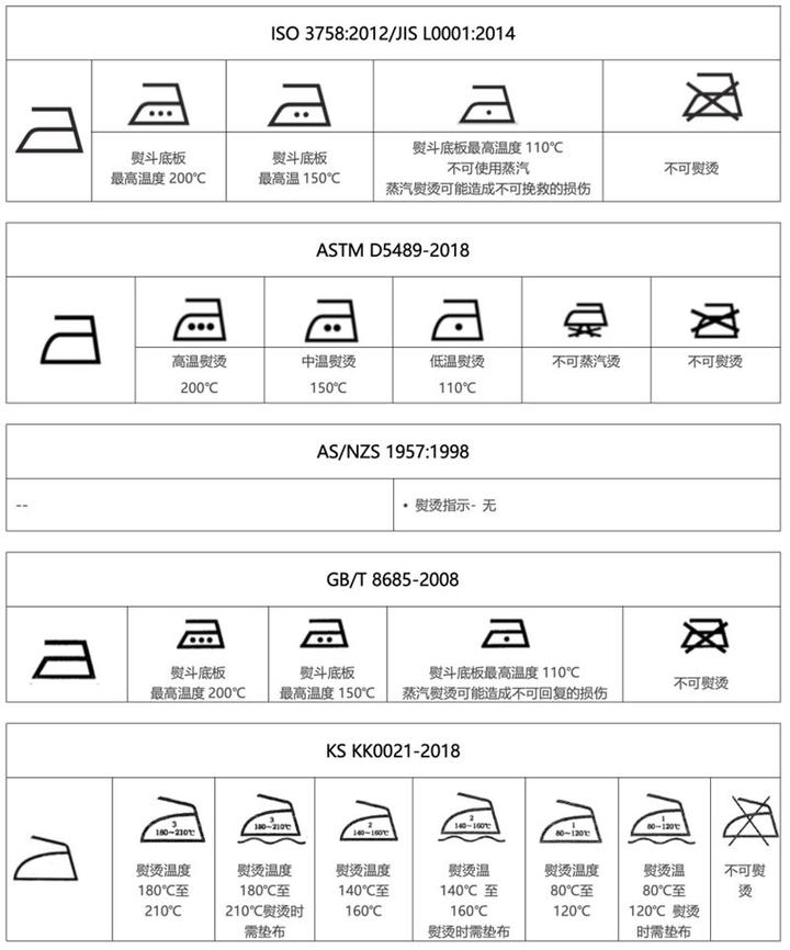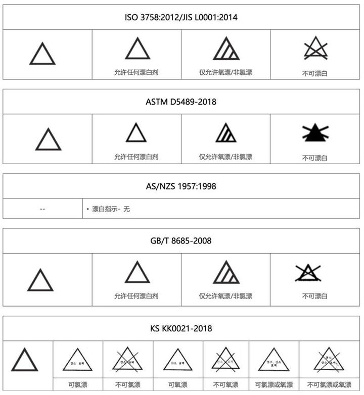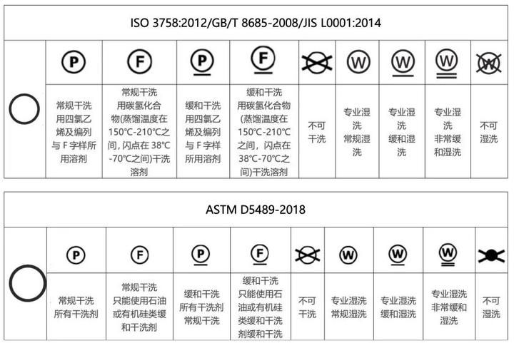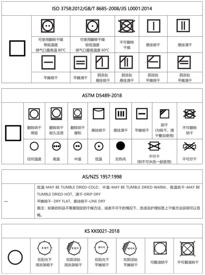 这里整理了下常见各国标准的洗涤标签以及标准[1]