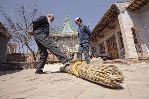 用木棍或者草席卷起来来回擀动,