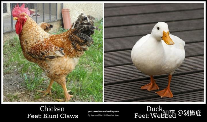 鸡是陆禽,鸭是游禽1. 进化学差异: