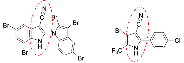 实际上,有一种杀虫剂溴虫腈(Chlorfenapyr)就是类似的作用机理。溴虫腈进入体内后会变成溴代吡咯腈(Tralopyril),同样是 2 位芳环、3 位氰基外加溴原子和三氟甲基这些吸电子基团的取代,同样是破坏呼吸链的作用机理。