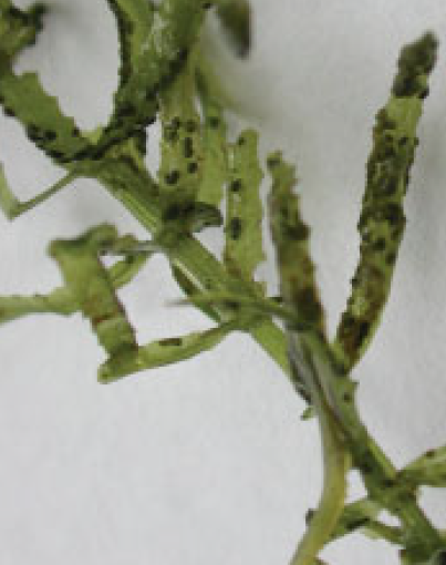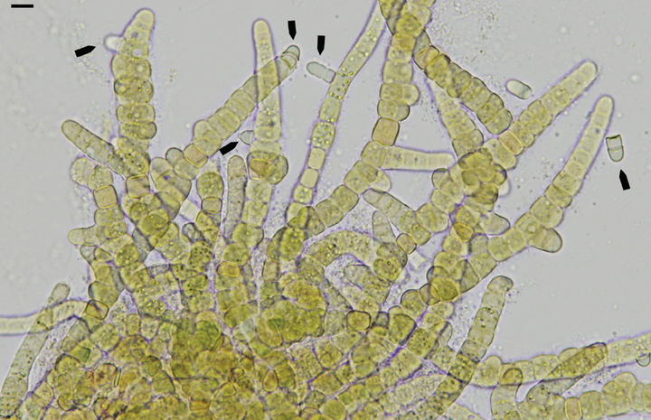 黑藻叶片上会长很多藻类,比如硅藻、蓝藻、绿藻。研究人员在瑟蒙德湖的黑藻叶片朝下的一面发现了很多肉眼可见的黑点,进一步研究后发现是一种未知的蓝藻。黑藻叶片表面超过 90%的地方长了这种蓝藻。