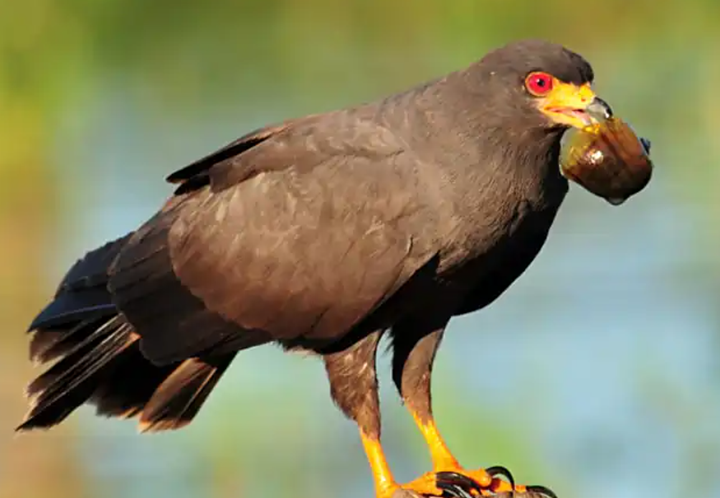 研究发现,草鱼、锦龟吃了有居黑藻杀鹰藻的黑藻后也出现了类似 AVM 的中枢神经系统损伤。在佛罗里达州中部的托霍普卡莱加湖(Lake Tohopekaliga)也有很多黑藻和居黑藻杀鹰藻,当地有一群濒危的猛禽蜗鸢(螺鸢)(Rostrhamus sociabilis),还有大量入侵物种斑点福寿螺(Pomacea maculata),是螺鸢的主要食物来源。这个湖还没有出现过 AVM,但是实验发现这里的黑藻也有导致 AVM 毒素。生物学家给斑点福寿螺喂食 AVM 水域的黑藻,再把斑点福寿螺喂给来亨鸡,发现万分之三的来亨鸡出现了 AVM 症状,解剖、镜检也发现了 AVM 典型的脑部损伤。这又是一条毒素通过食物链传播的路径,也说明螺鸢实际上也很有可能已经患上了 AVM