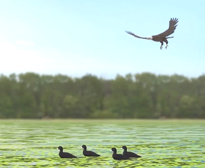 就在生物学家焦头烂额的时候,其他的鸟类也开始出现类似的问题。每年冬季,除了白头鹰之外,还会有 8000 只美洲骨顶(Fulica americana)在德格雷湖过冬。美洲骨顶长得像鸭子,群居,会游泳,也会飞行,主要吃水草、鱼和一些虫子,是白头鹰的猎物之一。