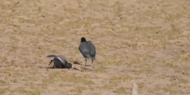 两只患 AVM 的美洲骨顶,右边那只飞不起来了,左边那只已经站不起来了