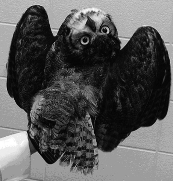 患 AVM 的美洲雕鸮(大雕鸮、大角猫头鹰