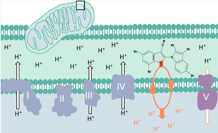 杀鹰毒素搬运氢离子,破坏呼吸链