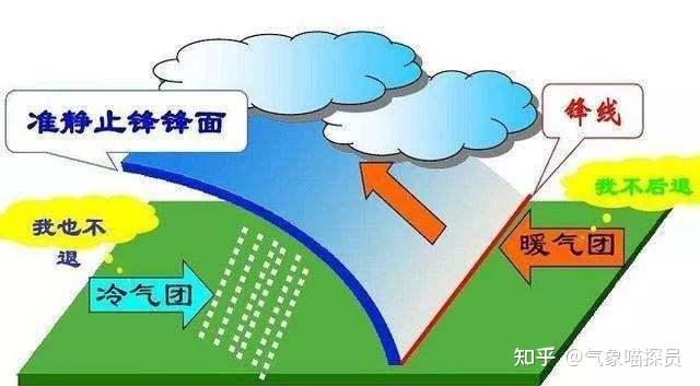 准静止锋,是当冷暖气团势力相当时,锋面移动缓慢或几乎停滞时的锋。它在天机图上以红蓝相间的符号表示,这种僵持的场景最为考验耐心。锋面在某一个地区长时间的徘徊最容易导致持续性的连绵阴雨、低温或者雾霾天气。我国著名的江淮梅雨就是准静止锋的经典之作,是海洋暖湿气团与大陆冷空气长期对峙的结果。