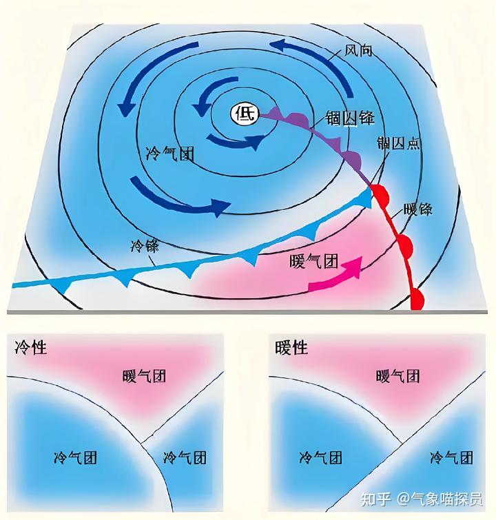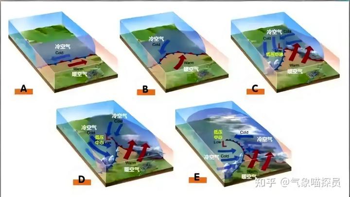根据气团力量的消长移动方向以及发展阶段,锋主要分为几种经典模式,每一种都带有截然不同的天气情况: