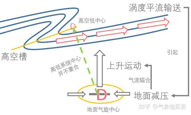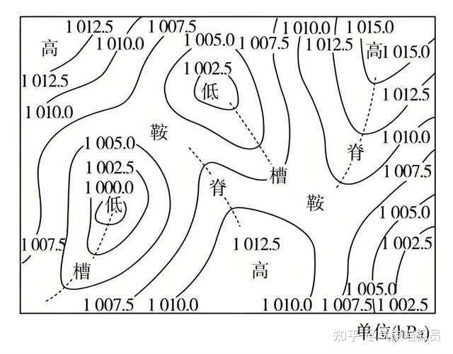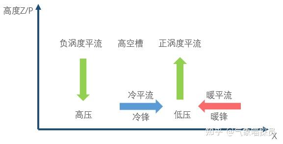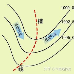 低压槽(简称“槽”),是波谷所在,在槽线附近等压面下凹,空气出现辐合上升运动。这通常对应的天空云量增多,风雨交加的恶劣天气区也是气旋系统发展和加深的温床,槽后则通常是西北气流引导冷空气南下。