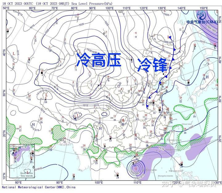 而寒潮的主体就是一个强大的冷高压系统,其前锋就是一条强冷锋。随着冷高压的东南下,这条冷锋将会以非常快的速度推进。强冷锋过境时,气温将会在短时间内断崖式下降、气压飙升,并伴有强烈的偏北风。这条冷锋的强度将直接决定后面冷空气主力到来时,降温猛烈程度和风的强度