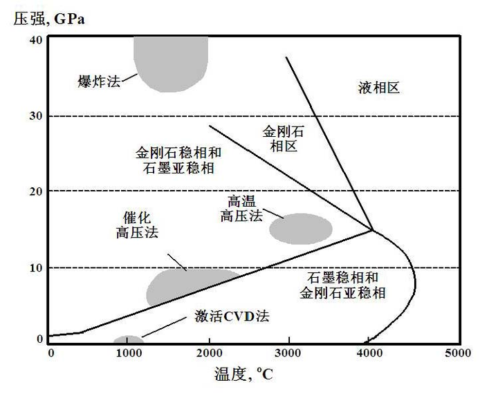 而相图里碳的液相区还在金刚石相区后面,甭管是所需压力还是温度都高的可怕。