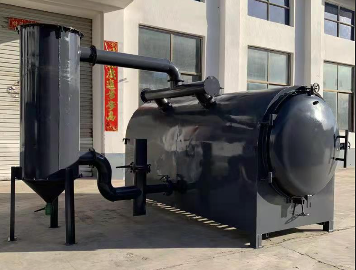 通过冷却会产生木煤气,木醋液,木焦油三种副产物。