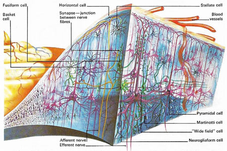 其中锥体细胞是大脑皮层所特有的,且是主要的投射(把信号发射到其它结构中去)神经元。
