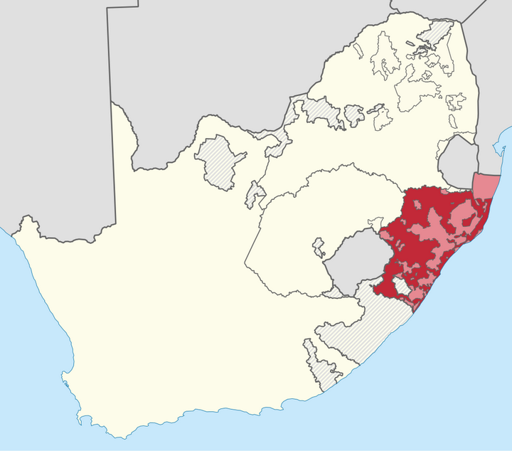 深红色为纳塔尔省,浅红色为夸祖鲁王国