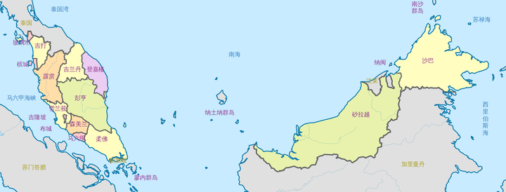 类似的还有马来西亚。组成马来西亚联邦的 13 个州中,有 9 个就是非主权君主国,包括吉打、吉兰丹、登嘉楼、彭亨、霹雳、雪兰莪、柔佛 7 个苏丹国,玻璃市 1 个拉惹国,以及森美兰 1 个严端国。这 9 国原来有 5 个独立国家(彭亨、霹雳、雪兰莪、柔佛、森美兰),4 个暹罗的附属国(吉打、吉兰丹、登嘉楼、玻璃市)。到 20 世纪初,9 国渐次都成为英国的保护国。二战后,这 9 个保护国和英国直辖殖民地马六甲、槟榔屿一起,组建了马来亚联合邦,1957 年马来亚联合邦独立,9 个君主国也就成了联合邦中的州。