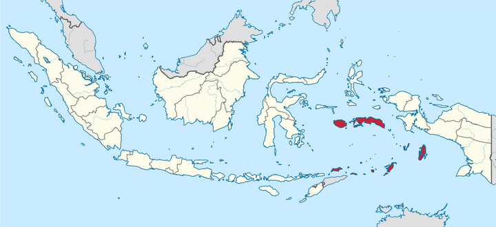 马鲁古省在印尼的位置,印尼有 38 个省级行政区