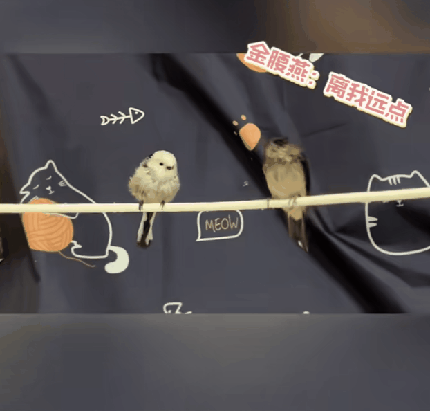 这张图就展示了肥啾想跟金腰燕贴贴,但是被凶走了的场景。