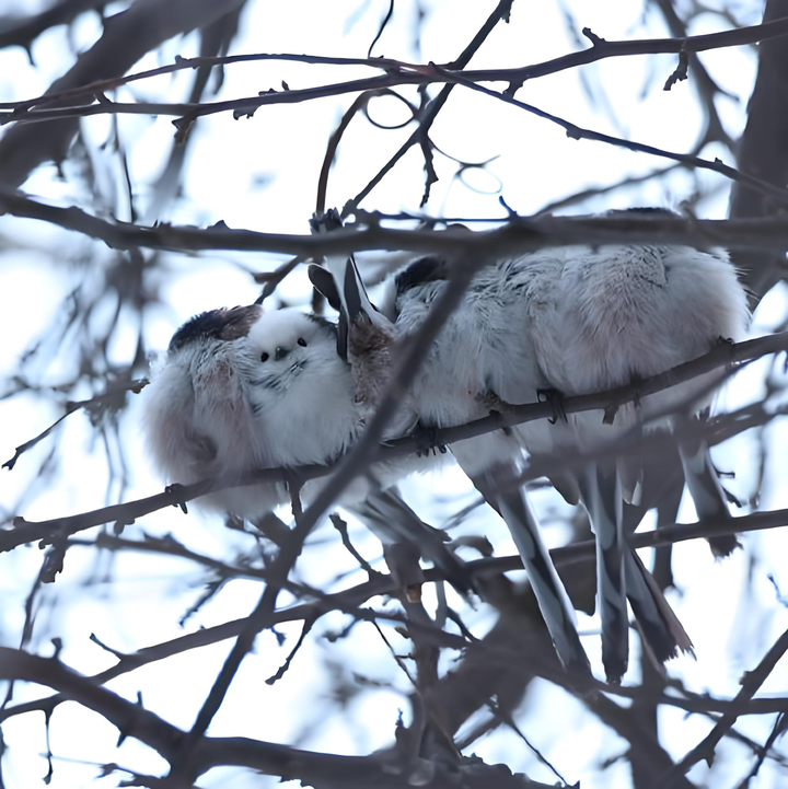 所以由此及彼,只要是圆圆的肥啾啾的小鸟,它们就大概率生活在冬季比较寒冷的地区,喜欢在冬季互相贴贴,甚是可爱: