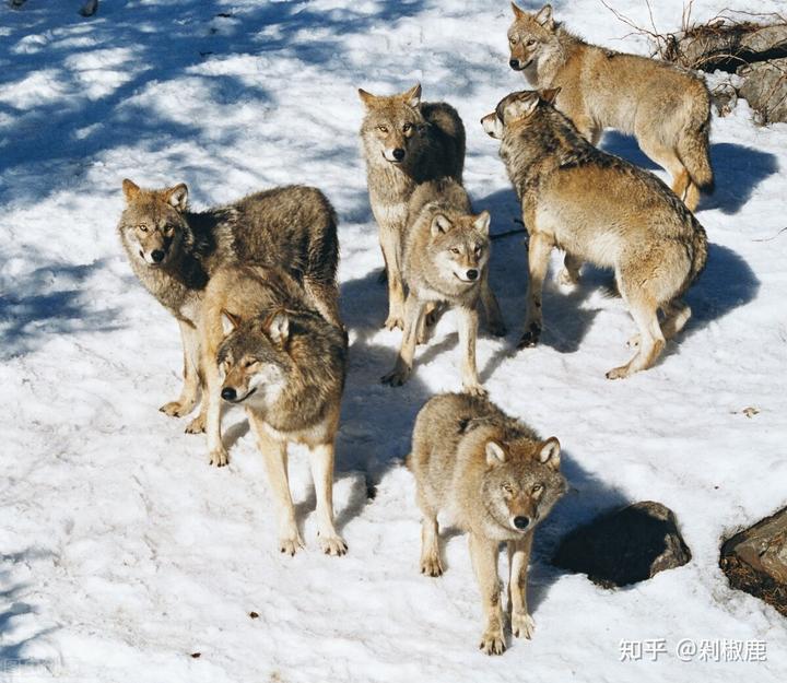 以狼群举例,狼是典型的社会型生物,在一起生活、狩猎、共同抚育后代。