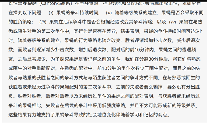 果蝇的社交与等级,谷歌机翻