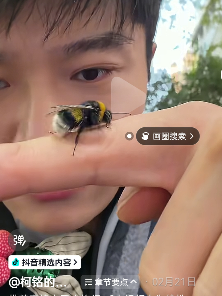 另外,如果昆虫飞行能力相对不强,人可以在半空中用手阻拦,这时昆虫会条件反射式地停落在手上。这位主播也是这样追回熊蜂的。