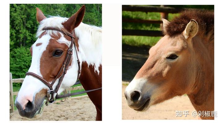 家马 Equus caballusVS 野生近亲普氏野马 E. przewalskii:面无表情 VS 面无表情