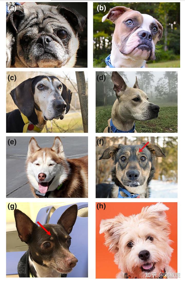 另外,狗的面部表现出更多的表情多样性,特别是在眼部区域,许多品种的狗拥有独特的“眼点”以及控制眼部运动的肌肉