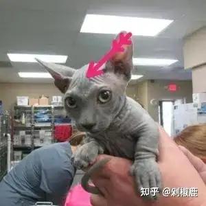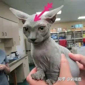 因为猫毛挡住不好识别,我这里用无毛猫举例: