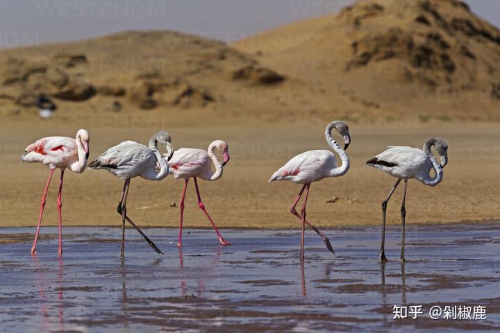 这种沙漠属于是古湖泊干涸形成的,地表是盐壳,雨季短暂积水,就会刷新火烈鸟这种耐高盐环境的水鸟: