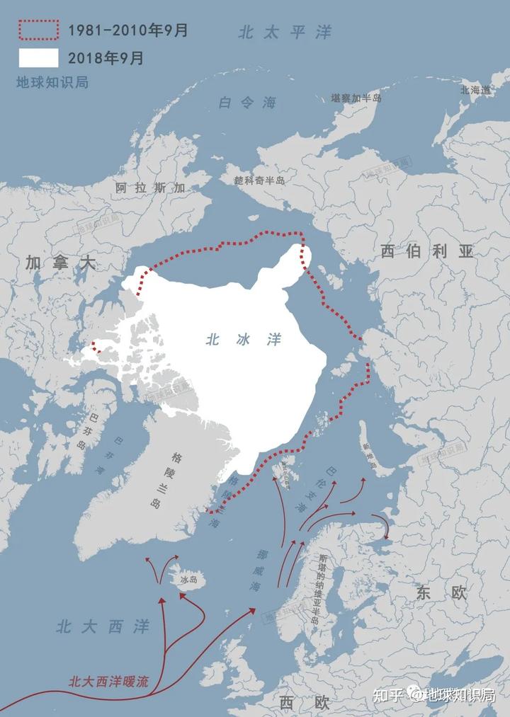 强劲的北大西洋暖流甚至可以一直穿越北极圈以北的巴伦支海,使得俄罗斯北冰洋沿岸的摩尔曼斯克港口虽地处北纬 69°,但是终年不冻。