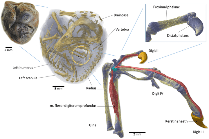 麝雉幼鸟刚出生时,指骨长度比例,非常接近始祖鸟[11]