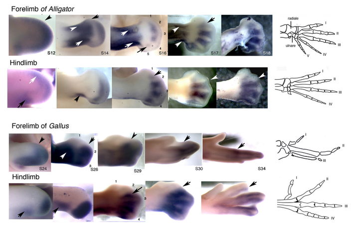 鳄类前肢 / 后肢发育(上) VS 鸟类前肢 / 后肢发育(上)
