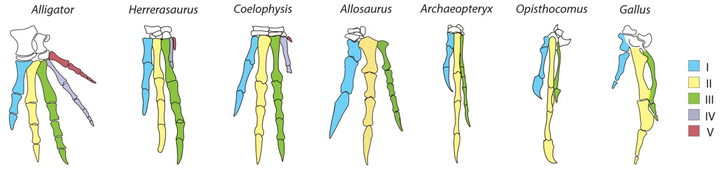 要推理出鸟类翅膀的「反演」,我们需要先整体了解指骨的演化过程。