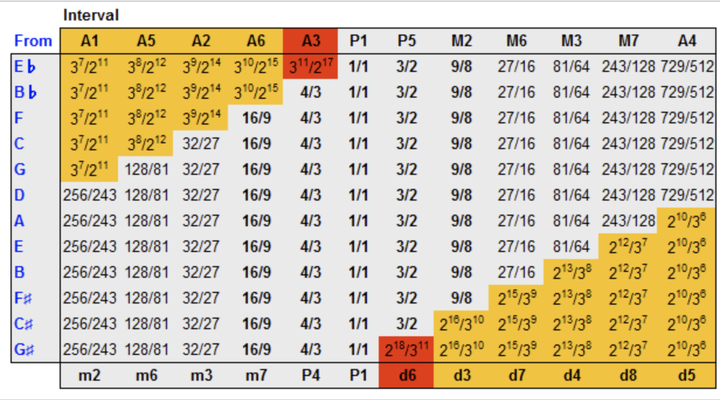 这个指的是按照毕达哥拉斯的割弦法,就会出现一个五度的,或是跨越七个半音的特别不和谐的音程。