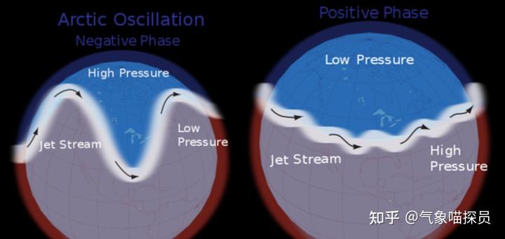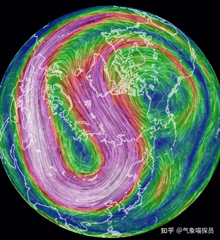 - 涡旋失稳:一个虚弱的西风急流无法有效的约束极地涡旋。这个原先相对规整的冷性陀螺会开始变得摇摆不定,东晃西晃,甚至有可能会被大气中的巨大波动猛烈冲击,不少极地冷攻击会趁虚南下,从而给某个倒霉蛋地区带来一次寒潮过程。