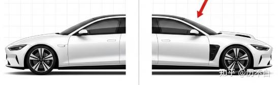 另外很多电车明明前面是个前备箱(Frunk),根本不需要那么高的机舱盖。但设计师偏不,他们会把引擎盖做得平直且修长,甚至在引擎盖末端加上隆起的筋线。